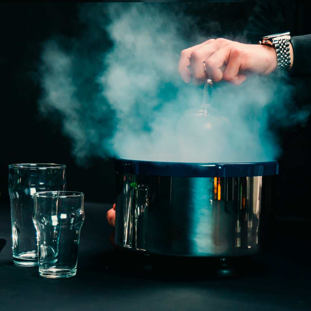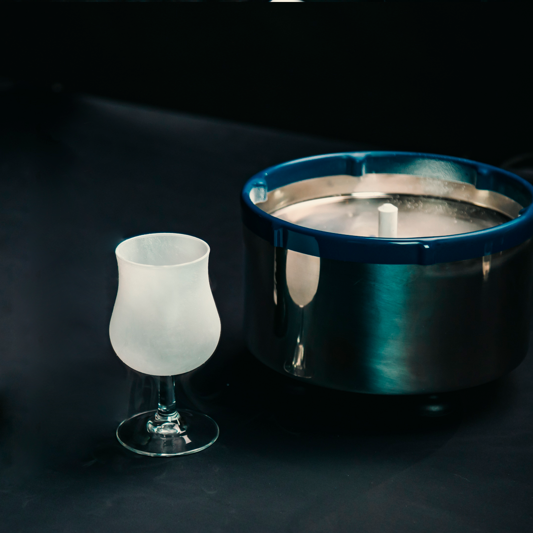 This version of the battery-operated glass chiller sets new quality standards in the Catering sector thanks to its ability to sanitize, remove odors and cool the glass with a surprising scenographic effect that attracts attention and leaves guests speechless.